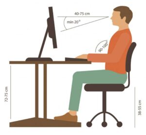 This can be made worse by a poorly setup workstation, with incorrect screen height and wrong keyboard height all contributing to poor posture.