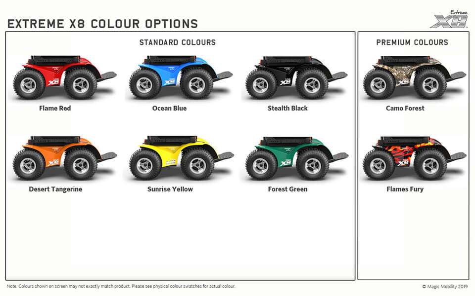 The Extreme X8 traverses kerbs and small steps with ease thanks to the large all-terrain tyres, four independent drive wheels and articulating front suspension.