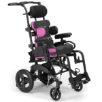 A paediatric tilt-in-space wheelchair designed in the appearance of a stroller, but with all the important features of a wheelchair.