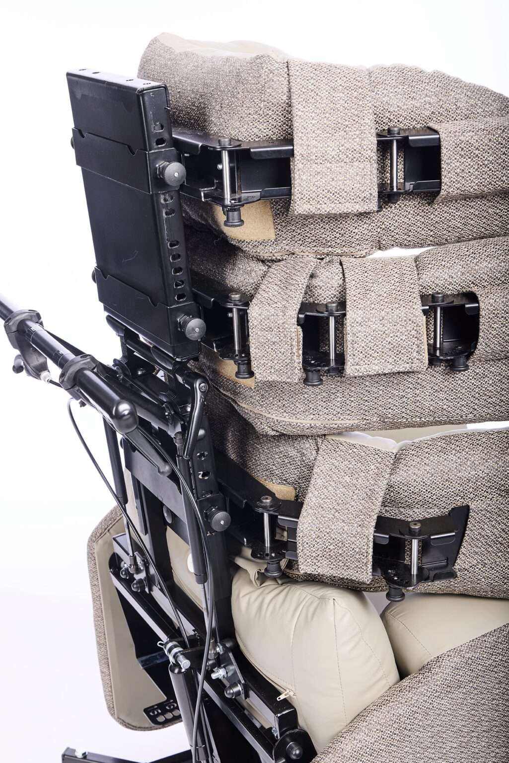 The highly configurable backrest can be set up to an incredible level of precision, to support any spinal deformity.
