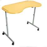 Kidney-shaped overchair table, perfect for eating meals or doing paperwork.