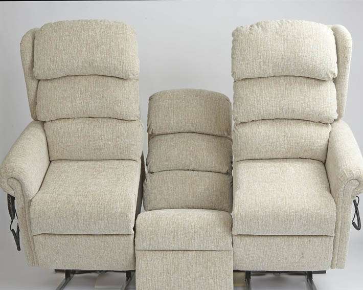Two independent rise and recline actions, one each side, with a static seat in the middle.